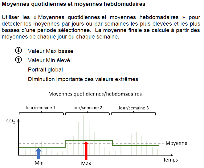 Notez que le type de moyenne influence principalement les valeurs minimums et maximums d’une analyse. Dans le cadre du projet du MEQ, il est recommandé d’utiliser la moyenne quotidienne.