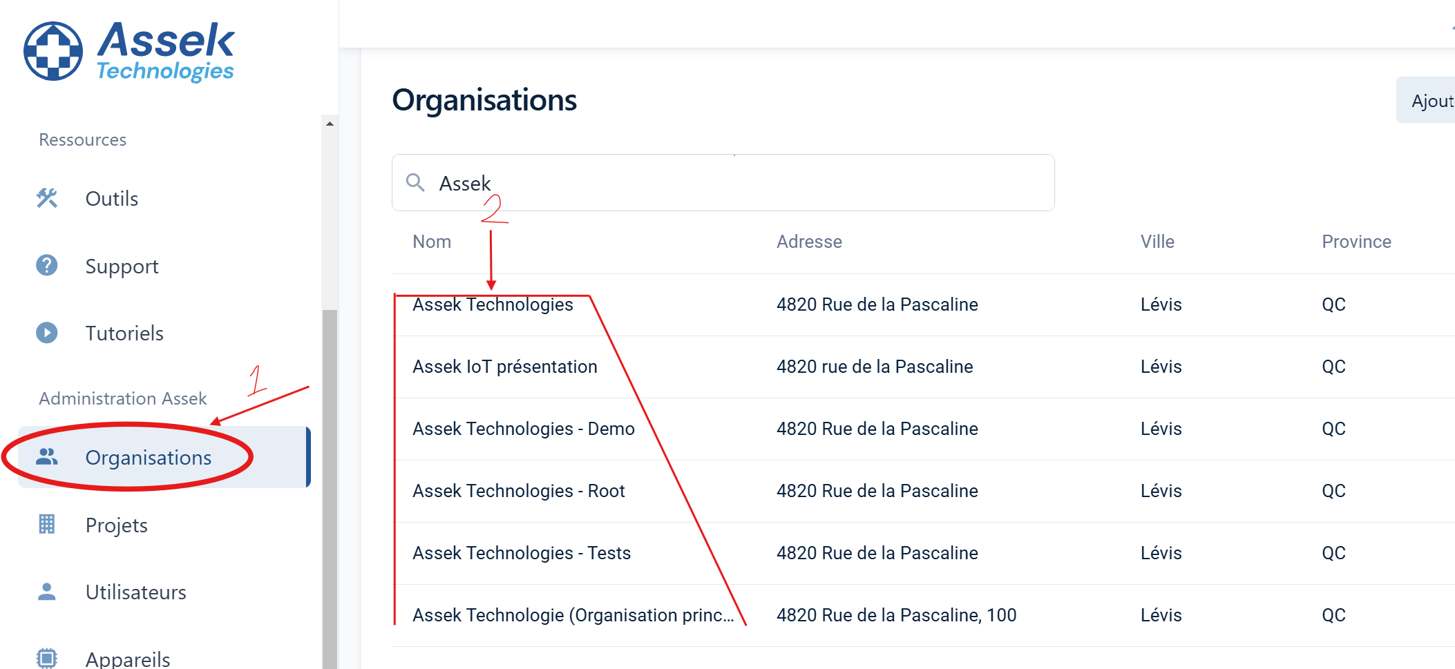 Voici comment ajouter un utilisateur à une organisation. Notez que seulement un administrateur peut ajouter un utilisateur. Cliquez sur mes organisations, vous verrez à droite la liste de vos organisations Sélectionnez l'organisation pour laquelle ...